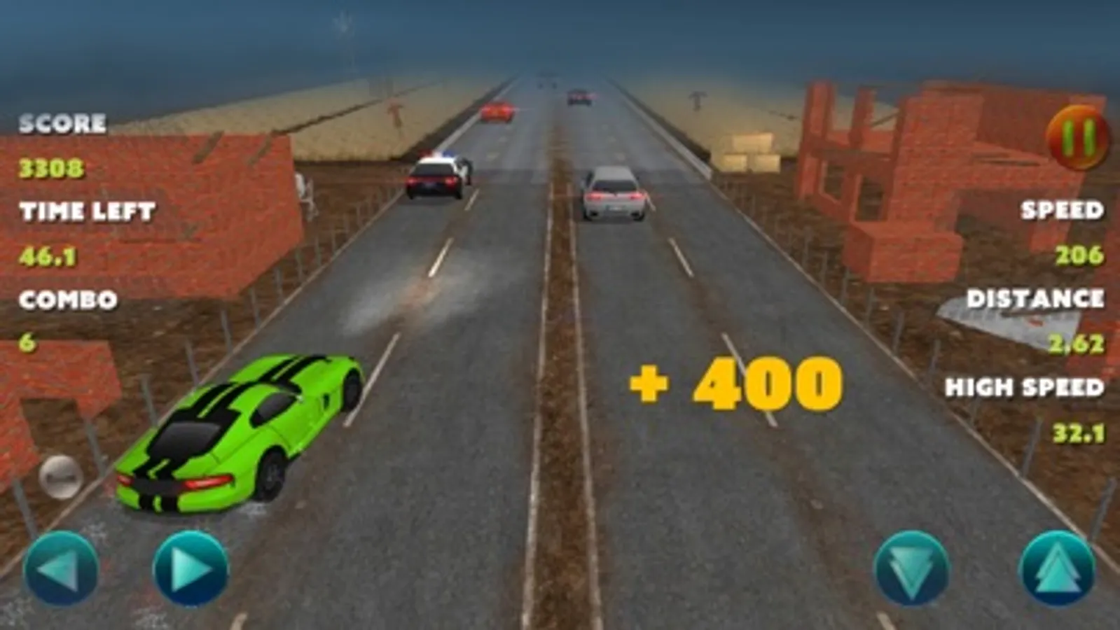 - When driving over 100 kmh, overtake cars closely to get bonus scores
