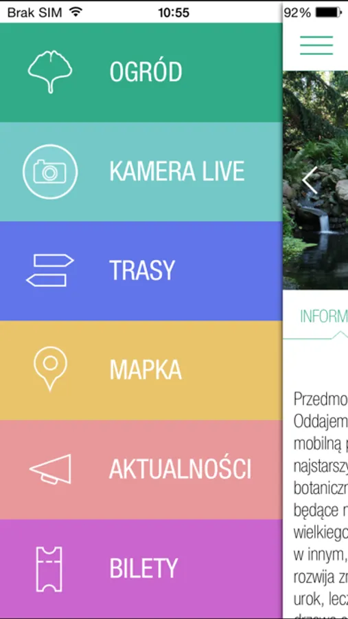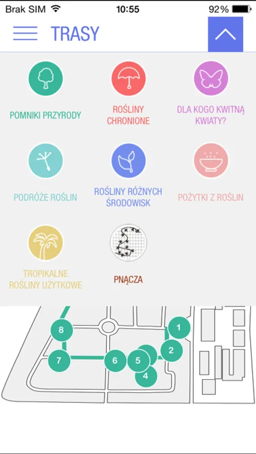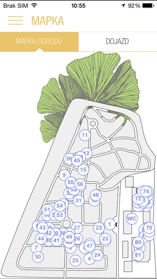 Aplikacja wyposażona została w funkcjonalną mapkę z zaznaczonymi różnymi trasami zwiedzania a także obszerny informator biletowy.