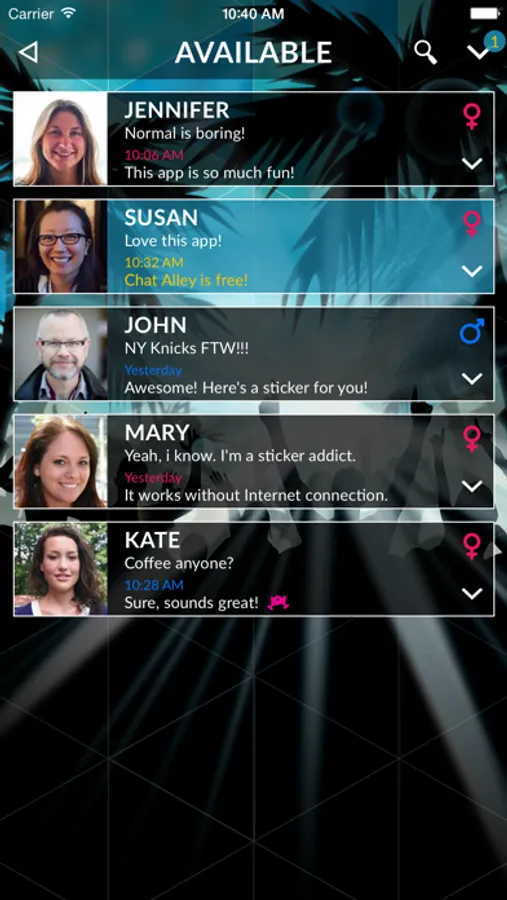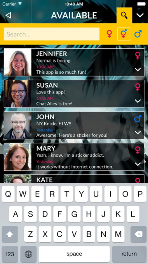 • Chat Alley is free to download and use. Download Chat Alley now and extend your network of people and friends. You can meet them immediately!