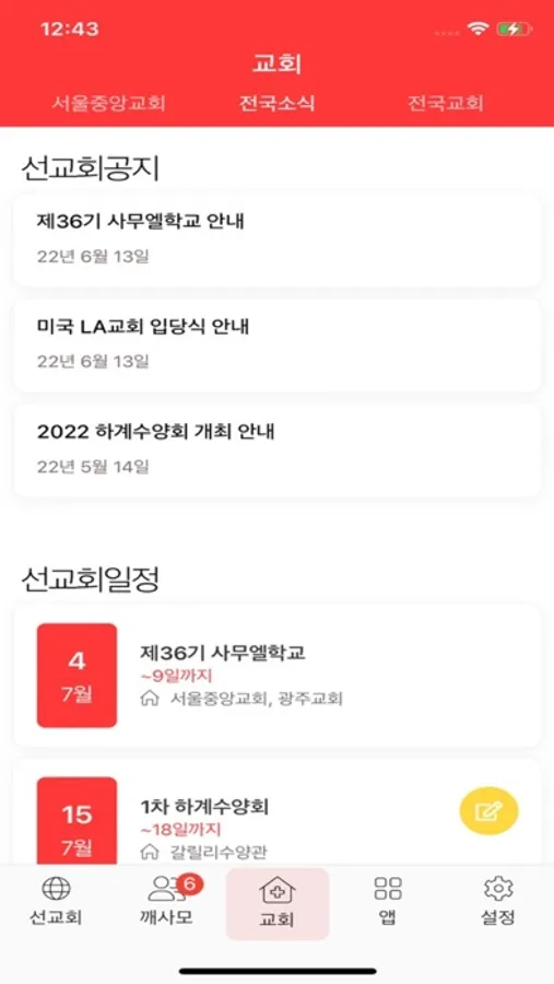 전국집회일정은 대집회 / 중집회 / 소집회 / 교회학교집회를 분류해서 제공합니다.