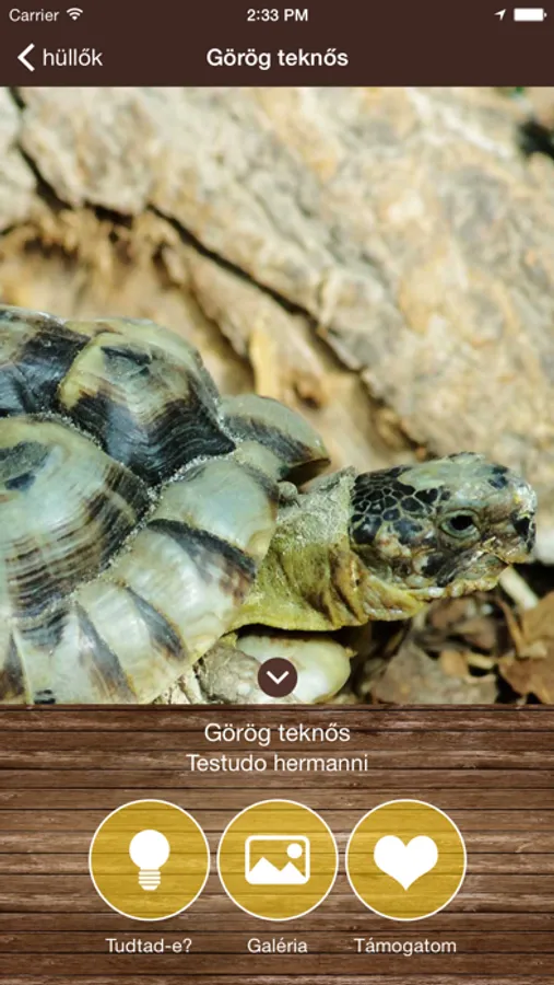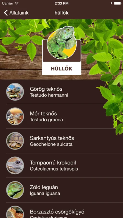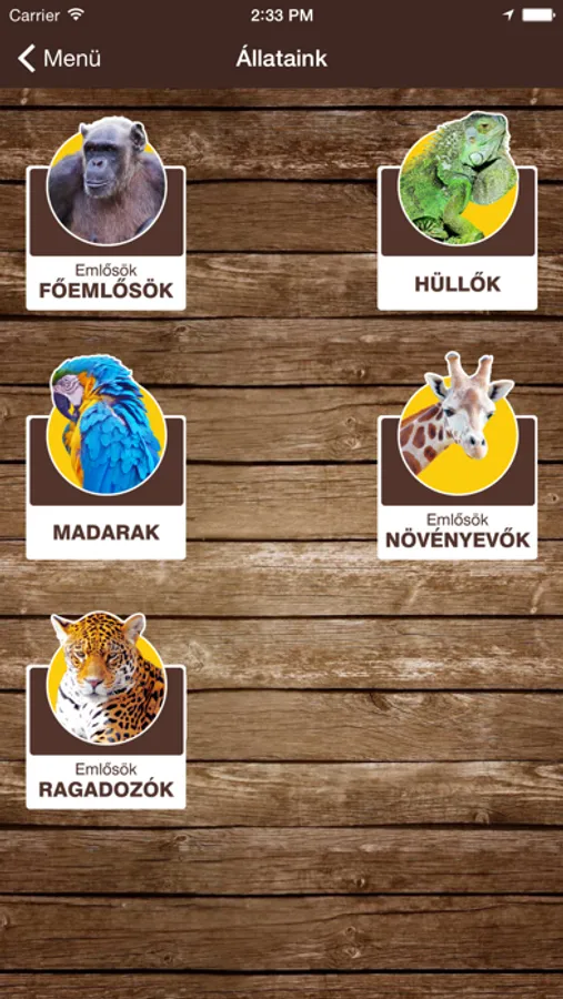 Az állatok menüben a sok érdekesség mellet képgaléria és videó galéria(ezt folyamatosan bővítjük) is segíti a látogatót abban, hogy az állatokat még jobban megismerje. Az alkalmazáson keresztül az állatok adatlapjáról indítható „támogatom” menüben egy-egy SMS-sel járulhatunk hozzá az állatkert lakóinak napi etetéséhez, itatásához, vagy orvosi ellátásához. Az adományozók nagylelkűségét egy automatikus Facebook poszttal köszönjük meg, melyet az állatkert falára írunk ki - hozzájárulás esetén névvel együtt. A támogatásról készülő posztot természetesen saját falunkon is megoszthatjuk.