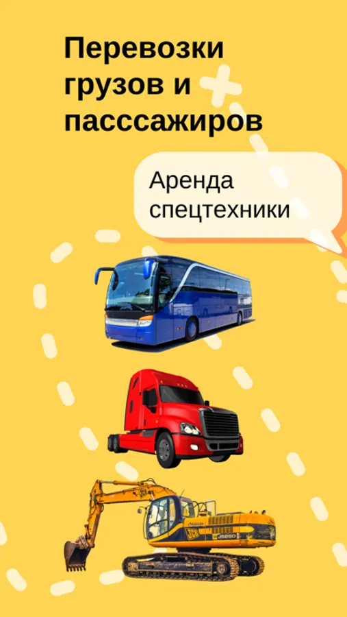 У нас вы можете найти заказы на аренду техники и перевозку пассажиров, грузы для перевозок и попутные грузы.