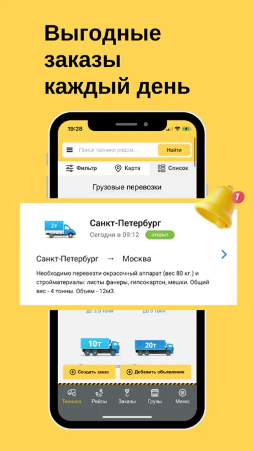 — бесплатные уведомления на телефон о новых грузах и заказах;