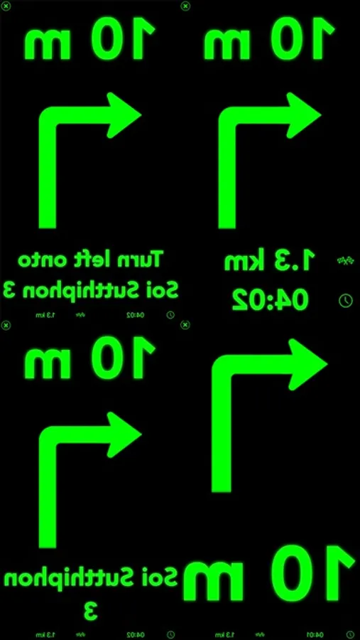 - Motorcycle mode: the HUD is not mirrored so you can use the app while riding your bike, or driving in bright conditions