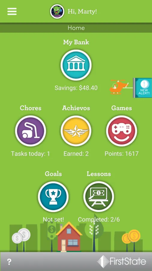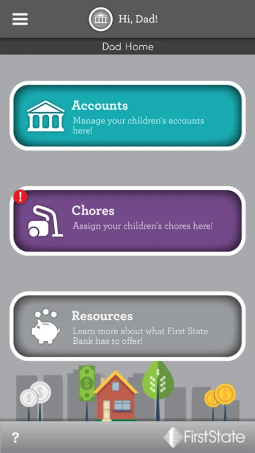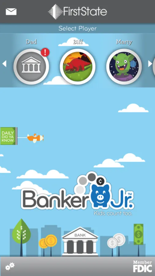 FSB Banker Jr. is a free mobile app offered by First State Bank to help kids save and learn money recognition and budgeting through games.