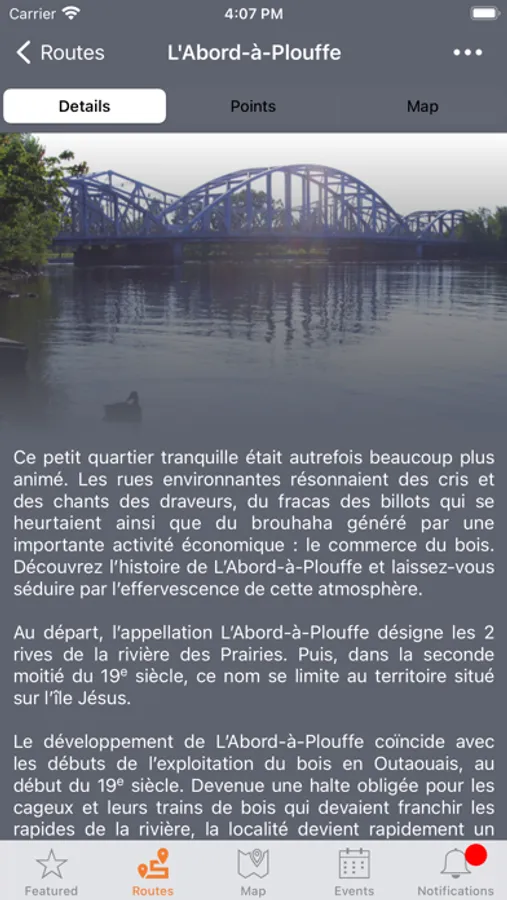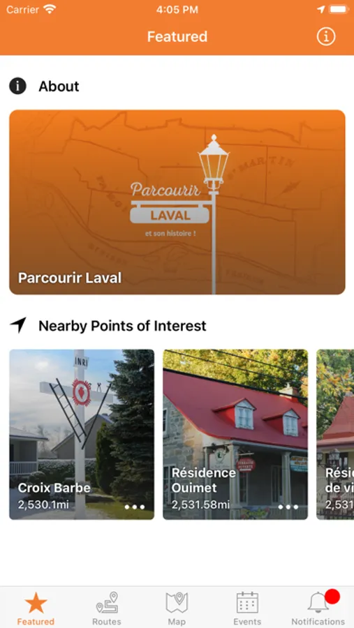La Ville de Laval vous présente sa première application mobile! Grâce à Parcourir Laval, remontez dans le temps et partez à la découverte de l'île Jésus. Débutez en choisissant votre parcours dans l’onglet « visite », puis naviguez à travers les différents points d’intérêt sur la liste ou sur la carte. Faites votre choix parmi les dizaines de bijoux patrimoniaux proposés et laissez-vous emporter par leur histoire. Photos d’archives, guides audio et anecdotes historiques : les plus anciens lieux et bâtiments lavallois n’auront plus aucun secret pour vous!
