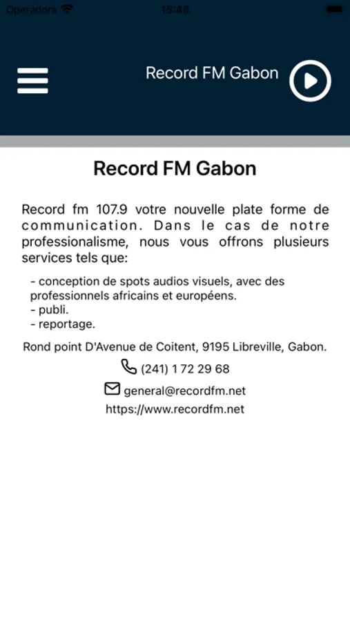 Record fm 107.9 votre nouvelle plate forme de communication. Dans le cas de notre professionalisme, nous vous offrons plusieurs services tels que :