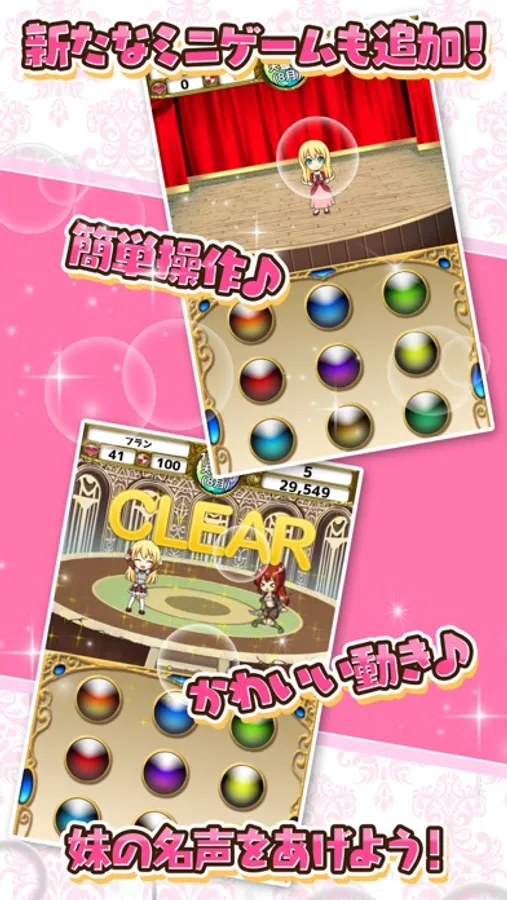 年1回の大会で優勝して妹(シスター)の名声をあげよう!簡単タップ操作で遊べるよ!