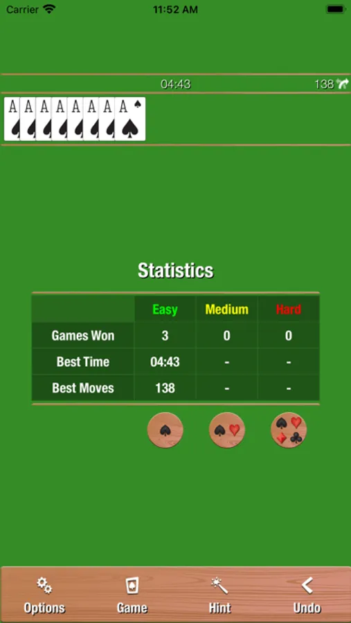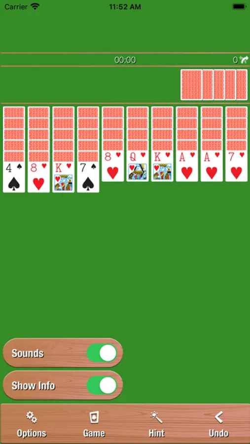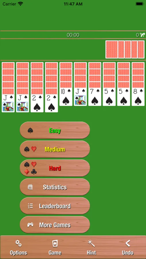 It's one of the most popular solitaire game. The purpose of the game is to remove all cards from the table, assembling them in the tableau before removing them. Initially, 54 cards are dealt to the tableau in ten piles, face down except for the top cards. The tableau piles build down by rank, and in-suit sequences can be moved together. The 50 remaining cards can be dealt to the tableau ten at a time.