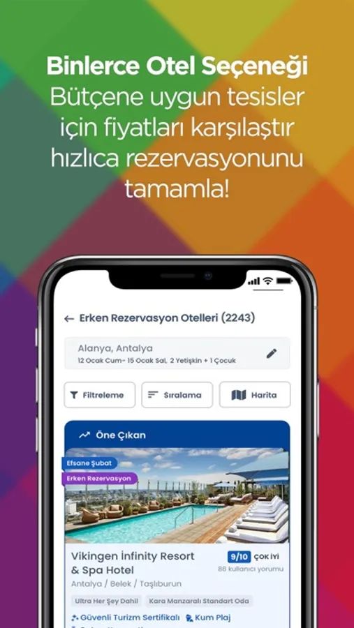 -Kolay filtreleme ve sıralama özellikleri sayesinde zevkinize uygun otellere hızlıca ulaşabilirsiniz.