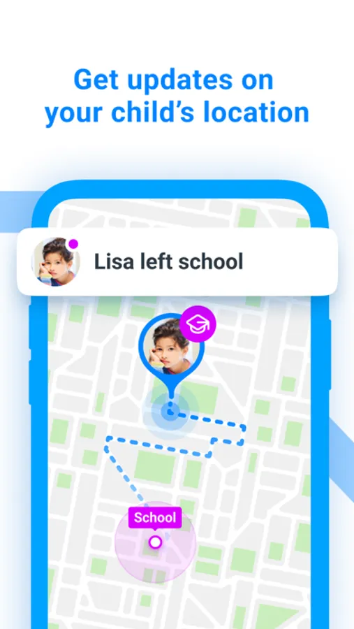 Security control – check that your child arrived at school on time – get notifications when they reach school, return home and get to other places; add in custom locations for additional security.