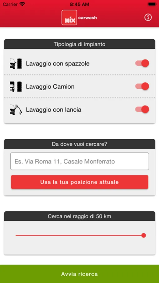 Questa App ti permette di ricercare e raggiungere l'autolavaggio più vicino alla tua posizione attuale oppure da un indirizzo impostato manualmente.