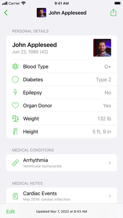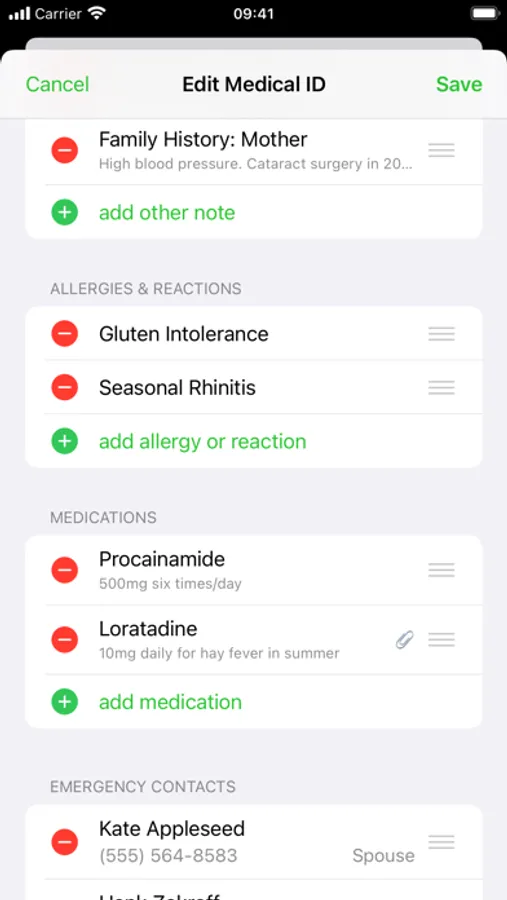 Back up your Medical IDs to iCloud Drive, Dropbox etc. for safekeeping or to copy them between devices.