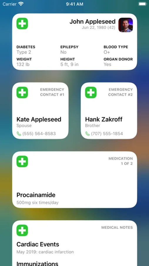 Highly-customisable widgets are also available to show information from your Medical ID. Your iPhone/iPad can be configured to allow Today View widgets to be accessible from the lock screen without unlocking your device.