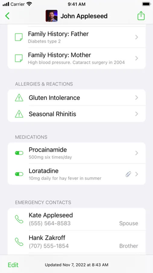 Create Medical IDs for yourself and, if required, other family members and dependents. Enter Personal Data, Medical Conditions, Allergies & Reactions, Medications, and Emergency Contacts. Use Other Notes for any other kind of information you want to record, such as insurance details, immunisations, family medical history etc. Attach photos from the camera or photo library. Attach photos or PDFs by importing them from iCloud Drive, Dropbox etc. or dragging and dropping them from other apps. Scan documents to create PDF attachments. Markup photo and PDF attachments to annotate, highlight or redact information.