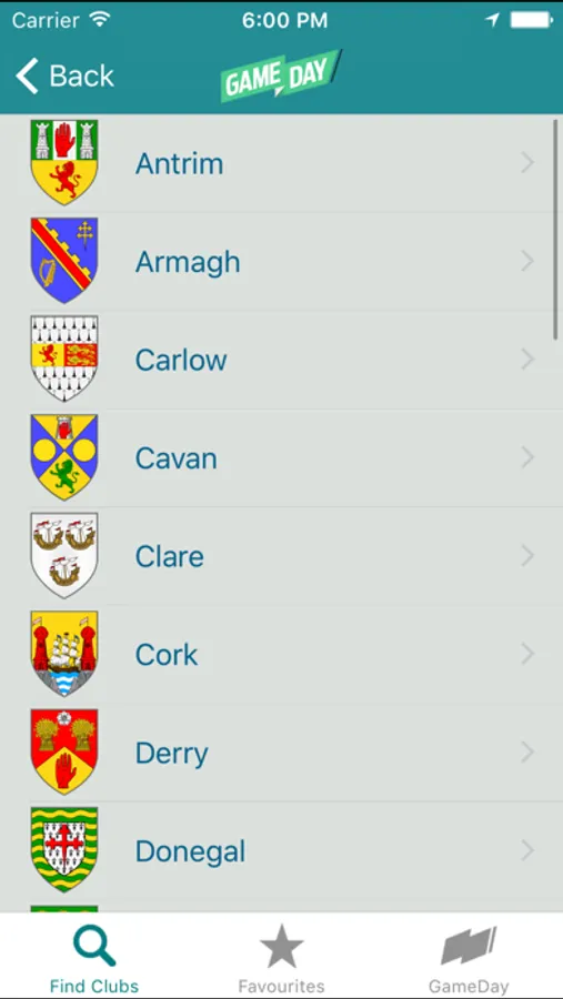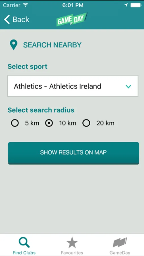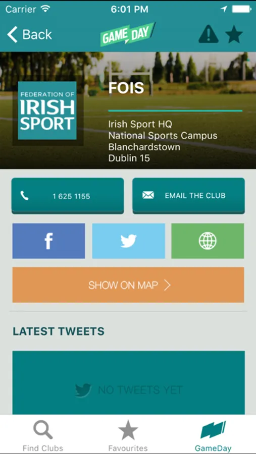 GAME DAY works by allowing users to search by sport, county and local clubs nearby. Each club has a club profile which has club contact details, website, social media links and directions to the club grounds via google maps.