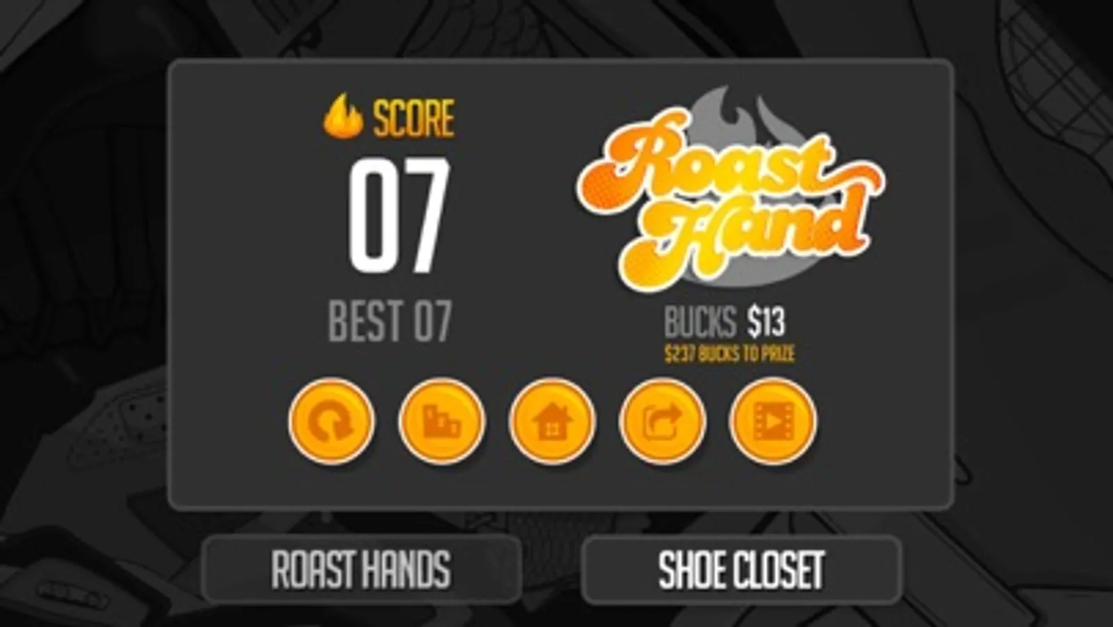 There are special “Roast Hands” available that changes your backgrounds, score higher points and play longer.