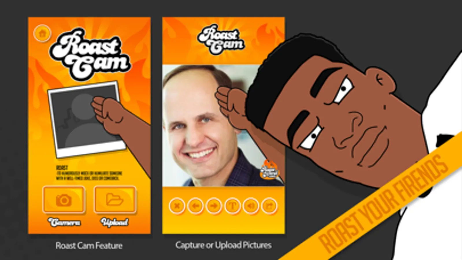 Ridicule, mock or make fun of something funny that you capture on cam. There are plenty of people walking around with “What are those?” worthy moments and now you can capture it and share it with the world. All images include a fully functionable “Roast Hand” that you can point to the area of ridicule.