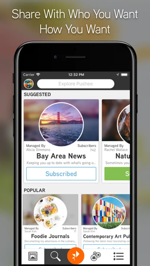 Pushee was made to create a better experience for you and your social media followers by changing the way people share with each other. Pushee users create “Channels” - one for each of the different groups of followers in their life, and post relevant content there. For example, you may have one Channel where you post content for your family, another for your friends and another for those people who share your passion (i.e. music) or hobby (LARPing) or favorite pastime (Italian cooking). By separating your content into these Channels, Pushee makes sure that your posts and messages always reach just the right people.