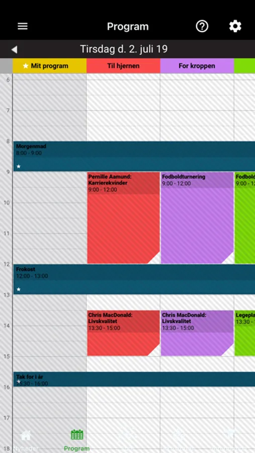- Sammensætte dit eget personlige program, og få notifikationer når et valgt programpunkt starter