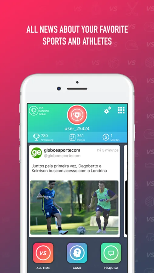 8 sports, real time news, game schedule, clubs and athletes rankings, your favorite player’s full profile, games and a lot more. All in a single app: SportsMatch!