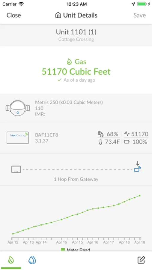 The Next Century mobile app is used to assist with in-the-field property setup. Quickly view real-time network status, equipment information, and device locations. Easily scan any Next Century device barcode to add meter information, or use the test connection button on a Next Century Transceiver or Repeater and immediately view the device's details on your phone.