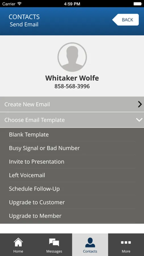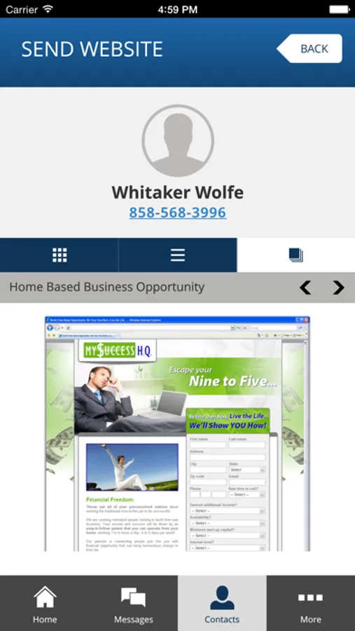 • Send pre-built messages, landing pages and media to prospects via text or email