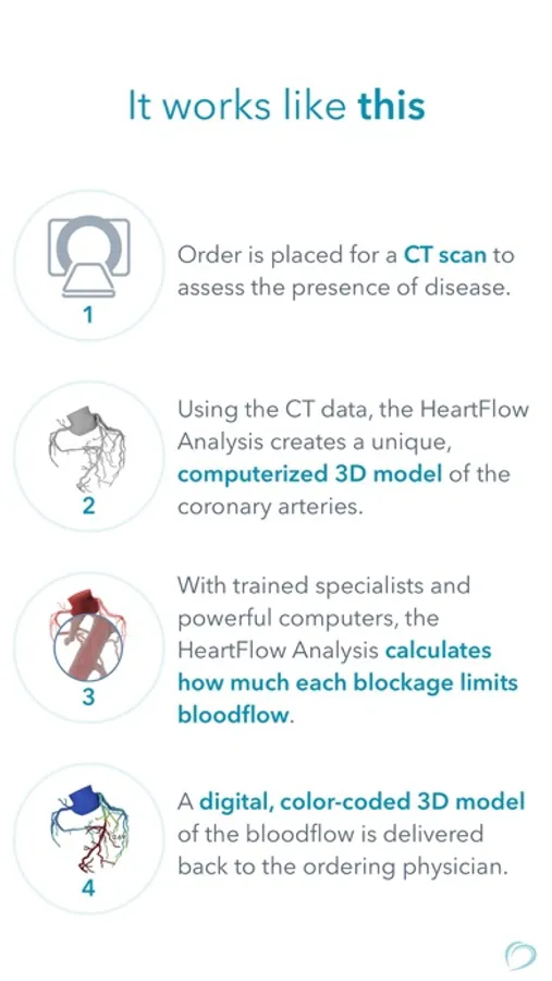 Our HeartFlow FFRct Analysis is a non-invasive cardiac test that creates a personalized 3D model of the heart. Clinicians use this analysis to evaluate blood flow to the heart and to help them determine the appropriate treatment pathway for each patient with suspected coronary artery disease (CAD).