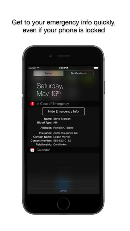 Allows you to display your emergency information as a Today View widget even if phone is locked.