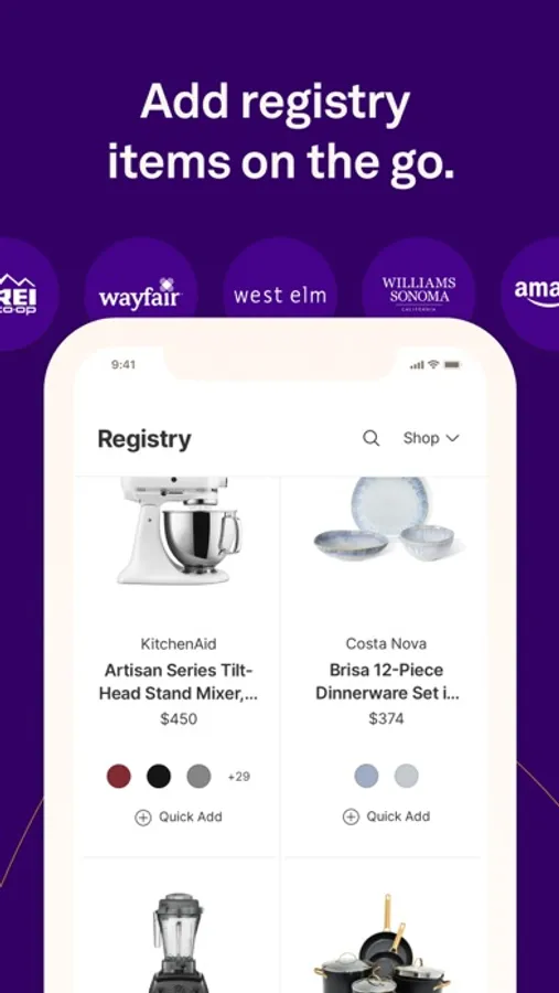 Edit and view your registry, shop online, and add gifts from anywhere.