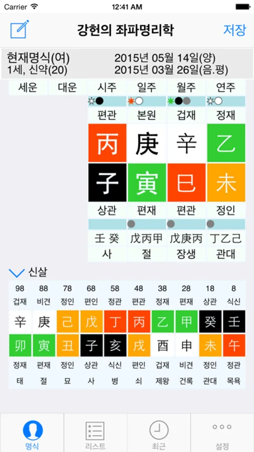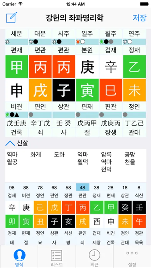 본원을 제외한 팔자를 터치했을 때 아래 정보가 표현 됩니다.