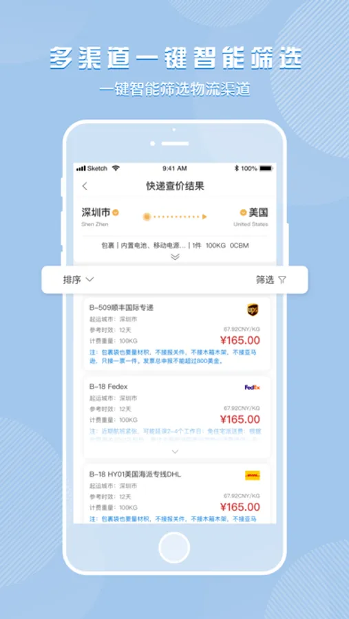 1、物流服务均以商品的形式展示,渠道,时效,重量段等一目了然;