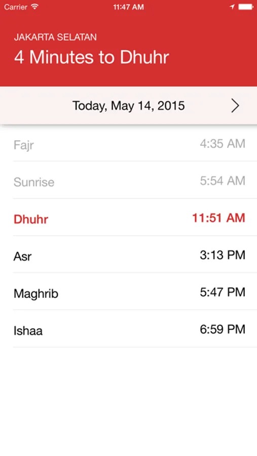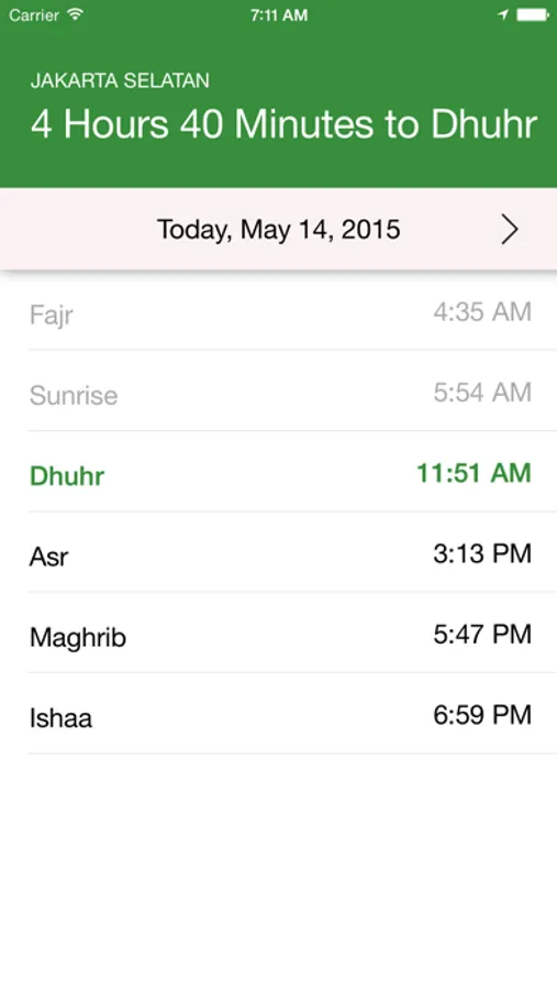 Salat Times provides you the Muslim prayer times table. The app will remind you when the prayer times arrived when you allow it to do so. Salat Times will automatically choose the best method for prayer time calculation based on your location