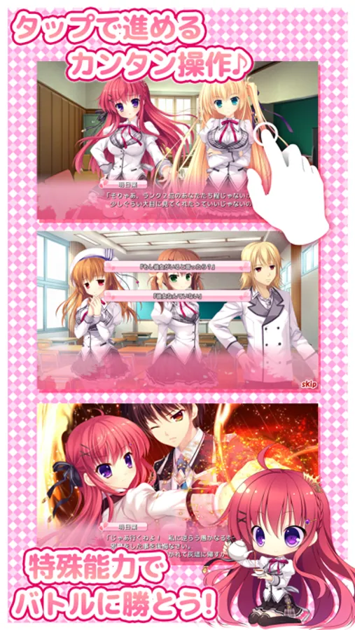 画面タップ : シナリオメッセージを次に送ります。/選択肢やメニューを選びます。