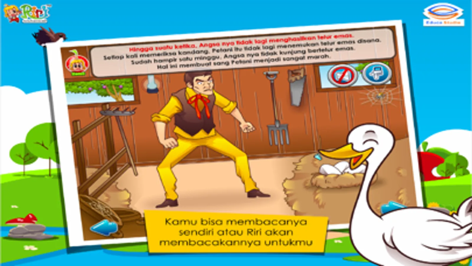 RIRI (Cerita Anak Interaktif & Game Edukasi) hadir dengan kisah baru : RIRI - KISAH ANGSA DAN TELUR EMAS.