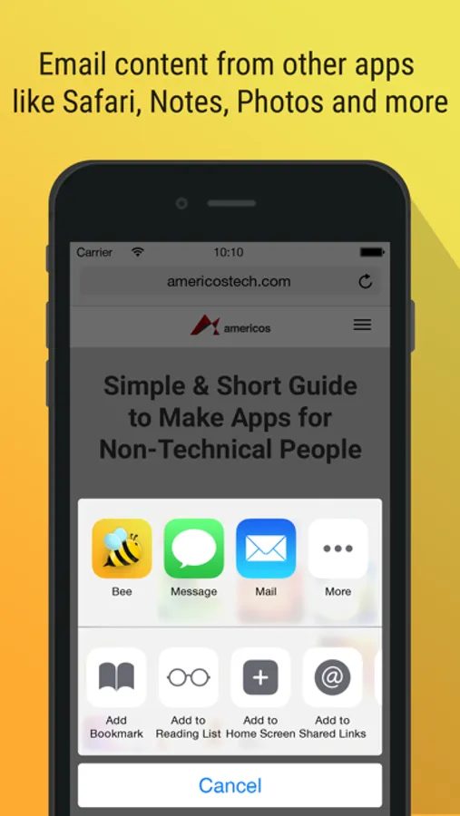 We’d love to hear from you about Bee. If you have any concerns, feedback, or questions email us at support@americostech.com or connect with us on Twitter: @beeemail