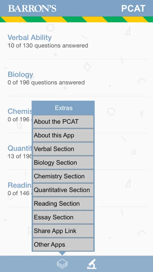 • Organized into 5 subject areas - college-level biology, inorganic and organic chemistry, quantitative ability, reading comprehension and verbal ability - the app provides a comprehensive review.