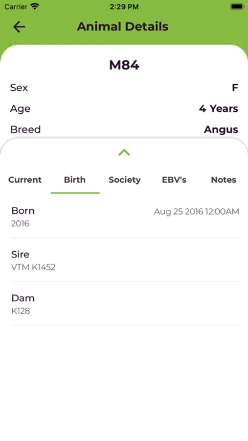 - View animal Birth Data