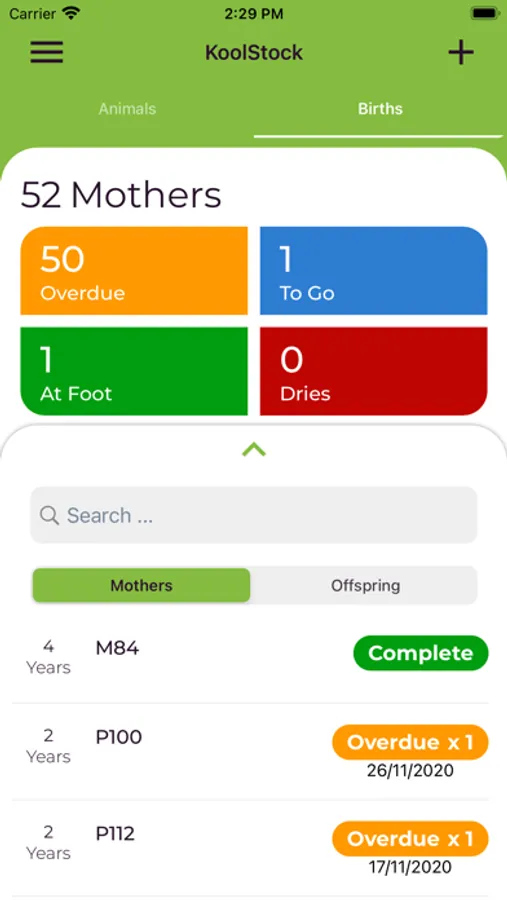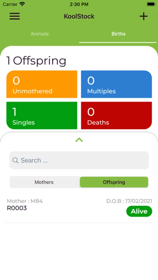 Sapien KoolPerform clients can setup Dam lists for recording Offspring at birth in the paddock. Multi user supported.