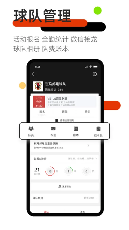 在这里你可以打造自己的球队,参与赛事,记录数据,观看赛事视频,制作运动集锦,拥有完整的参赛体验