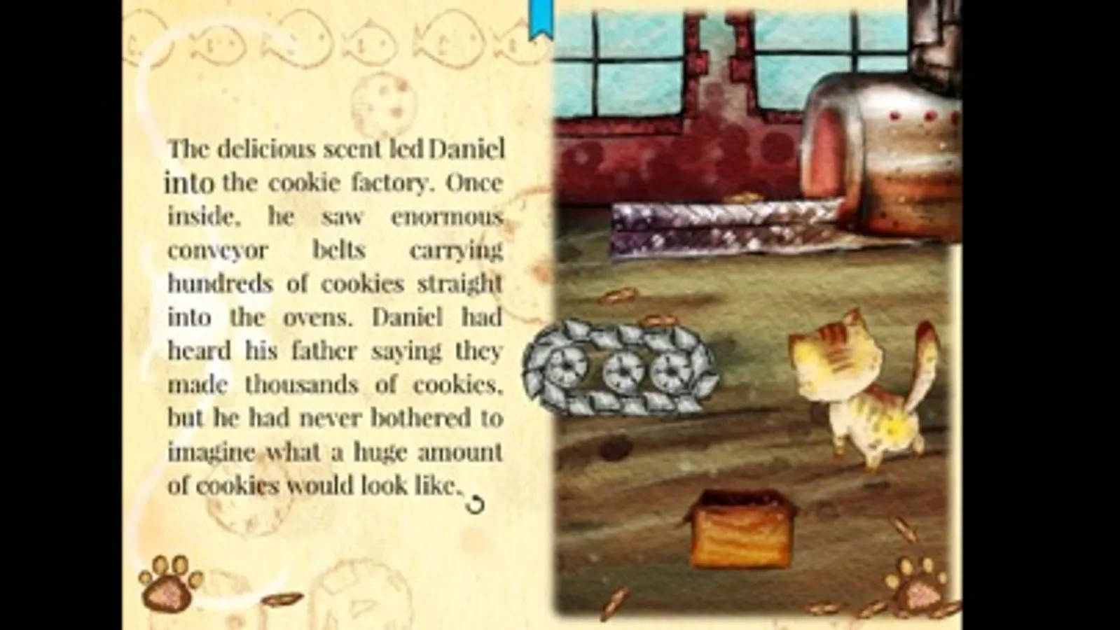 Daniel Cookiecat is a little curious kitten that went on an adventure inside a cookie factory. 30 fully interactive pages with narration in English and Spanish, amazingly illustrated and with great classical music, the best experience in narrated interactive tales.