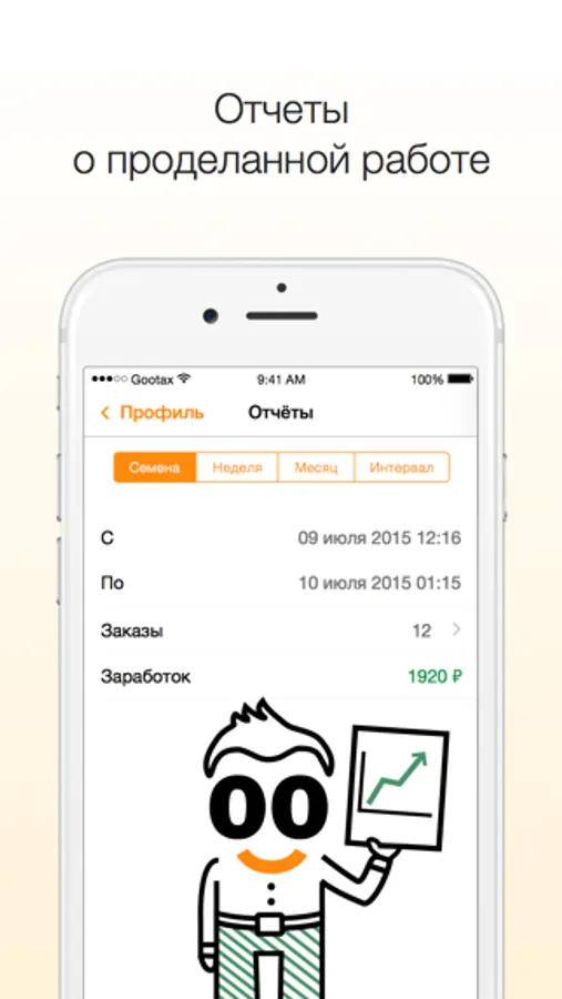 This app works just with software Gootax. You can open personal taxi and courier services with cloud software Gootax.