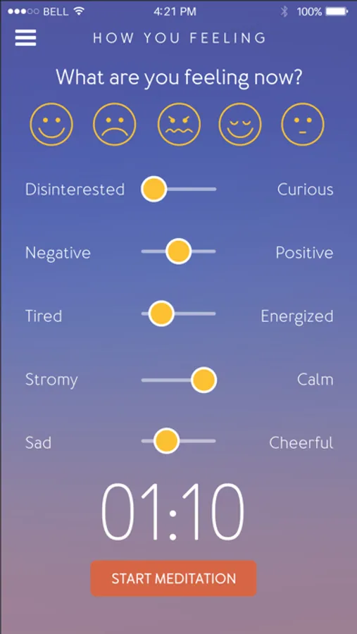 ** Tell your mood and InnerPeace app will set a time for your meditation