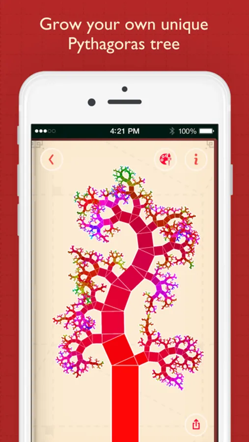 The Pythagoras tree is a fractal constructed from squares and right-angled triangles. Your Pythagoras tree grows up with each solved problem. Each tree is unique: no other tree has the same form. And after all levels are completed you will see its blossom. Everything depends on you. Good luck!