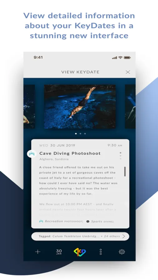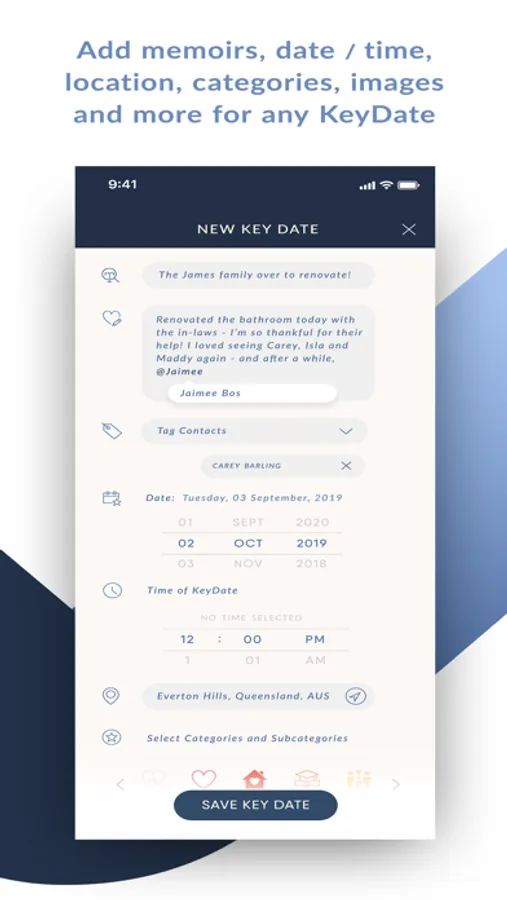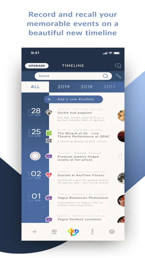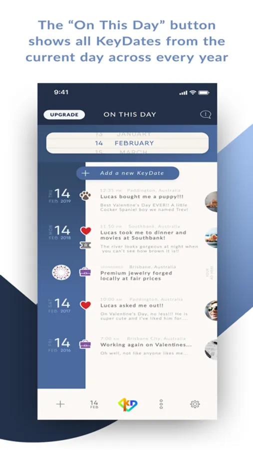 Capture your daily memories, events and more by adding KeyDates or importing from your calendar or social media. Unlock all features for a once-off lifetime fee - no ads or subscriptions!