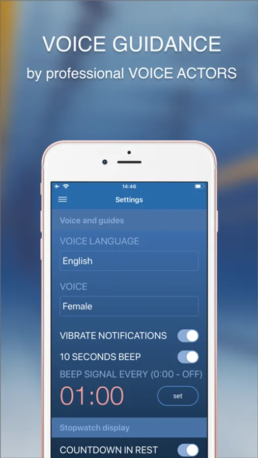 Training may be accompanied by voice guidance with male/female voices recorded by professional voice actors. STAmina supports English, French, Russian voice guidance.