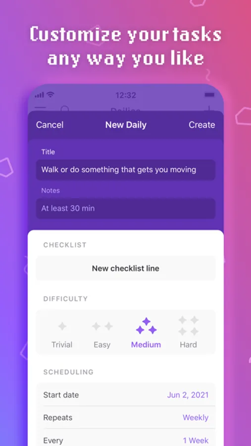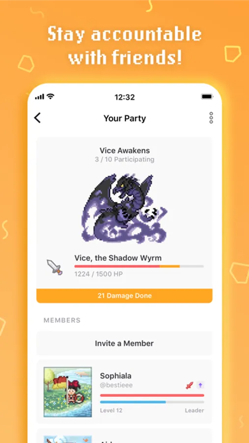 • Parties let you team up with friends for extra accountability and battle fierce foes by completing tasks