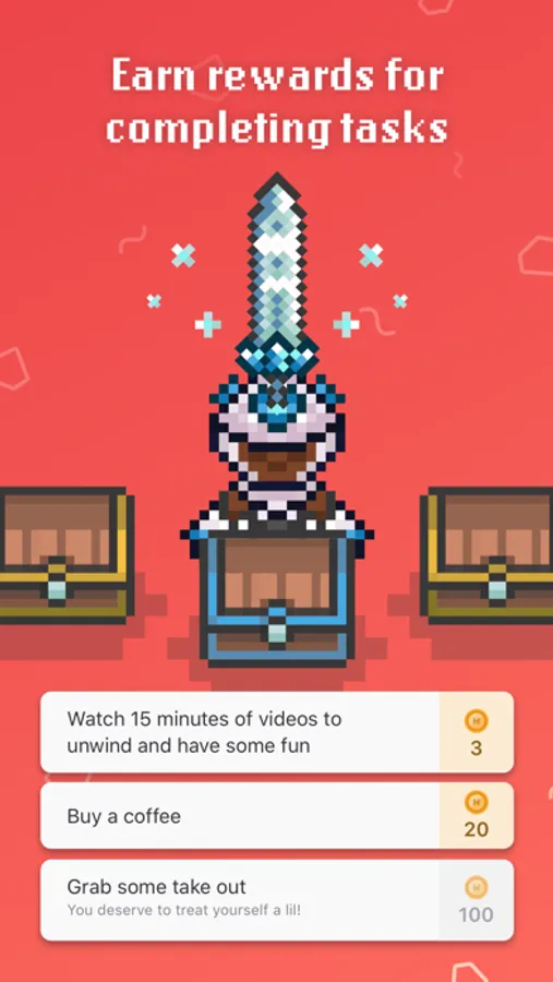 Create an avatar then add tasks, chores, or goals you’d like to work on. When you do something in real life, check it off in the app and receive gold, experience, and items that can be used in-game!