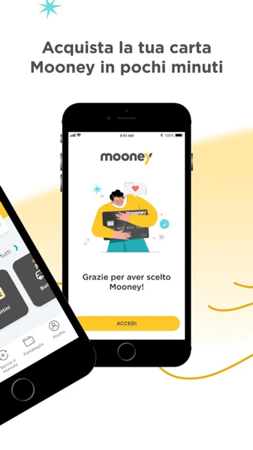 Scegli la carta prepagata Mooney per tutti i tuoi acquisti in totale sicurezza sia online che nei negozi fisici. La carta Mooney è tra le migliori prepagate contactless con circuito Visa: puoi ricaricare e prelevare dove e come vuoi, è una carta ricaricabile con IBAN italiano e l'attivazione è gratuita. Puoi anche pagare comodamente con il tuo smartphone, abilitando la carta Mooney al wallet Google Pay. Acquistala in pochi step e gestiscila comodamente da app.