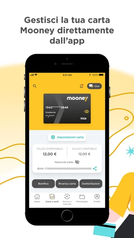 Richiedi e gestisci da app la carta prepagata VR46 nata dalla partnership tra Mooney e il Racing Team di Valentino Rossi. VR46 è una carta contactless con IBAN italiano con cui accedi a numerosi vantaggi esclusivi come sconti, concorsi a premi, servizi inclusi nel canone e tanto altro.